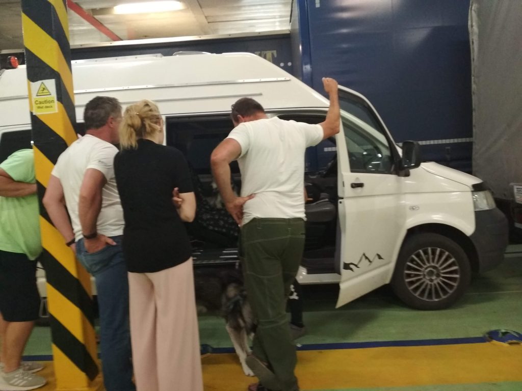Cesta nakonec uběhne docela rychle. Před příjezdem do přístavu nás i z pokoje vyženou, že tam musí uklidit. Příjezd tedy trávíme na palubě. A než nás z lodi pustí a vyjedou další auta, tak je to další hodina 😮