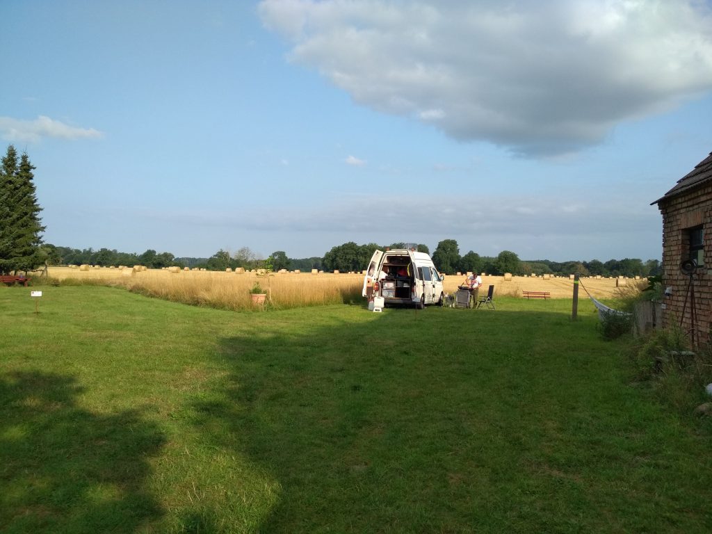 Přemýšlíme o návratu domů ještě dnes. Panička zadává do navigace domů a jedeme. Čas dojezdu domů je 4 hodiny ráno. Což nám je jedno, my už vegetíme a usínáme. Páníčkům se takhle moc jet nechce. Domluvíme se najít stellplatz. Nacházíme ho na potřetí. V jedné malé vesničce jménem Wietstock u nějakého domu na zahradě. Od majitele z domu vychází podivná hudba, ale prdíme na to. V okolní trávě se něco šustne, ale to dáme 😉
