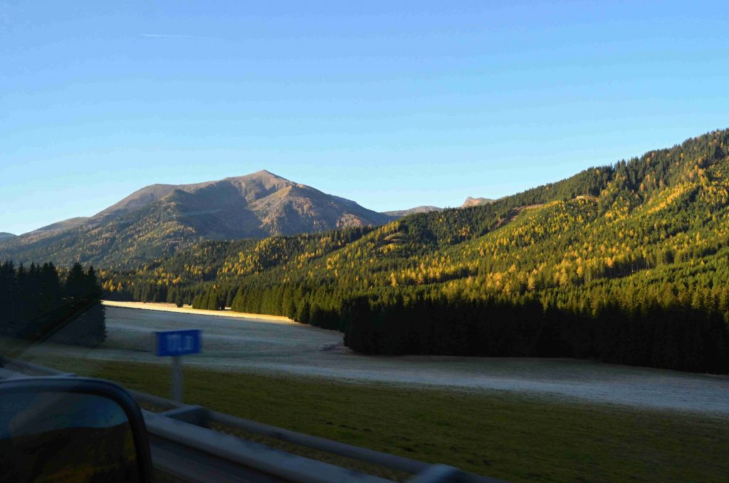 Aby naše cesty nebyli dlouhé, tak je většinou rozložíme s přespáním. Tentokrát vybral páníček spací místo už v Alpách a to TADY u městečka Trieben. Tentokrát již páničci hledali spací místa s elektrikou, aby jsme si nad ránem mohli v bejváku přitopit 🙂
