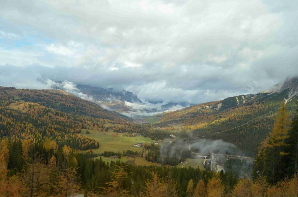 Mlha se začínala stávat naší kamarádkou 🙁 a odpoledne jsme začali hledat další spací místo a to byl problém. Hodně míst je v tuto dobu mimo provoz. Ale našli jsme 🙂 Sice v jiné části Dolomit než jsme chtěli být, ale našli. V městečku La Villa a tam je stellplaz Odlina. Tam je domeček a v tom domečku Vám i na záchodě hrají 😀 je tam teplo, čisto. Najdete zde umyvadla na nádobí, pračku, wc i sprchy. Moc fajn to tu bylo.