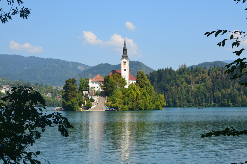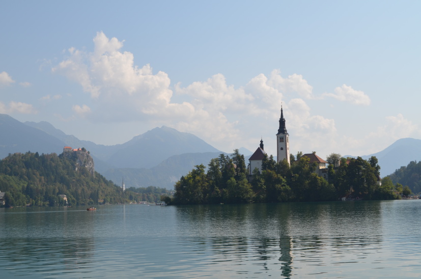 Po klidné snídani jsme vyrazili zpět do Bledu. Aspoň se projít okolo jezera. Bruno je naše potápka, jakmile vidí vodu ihned do ní skáče. To bylo i tentokrát. Jakmile jsme došli k jezeru ihned do něj skočil 😀
