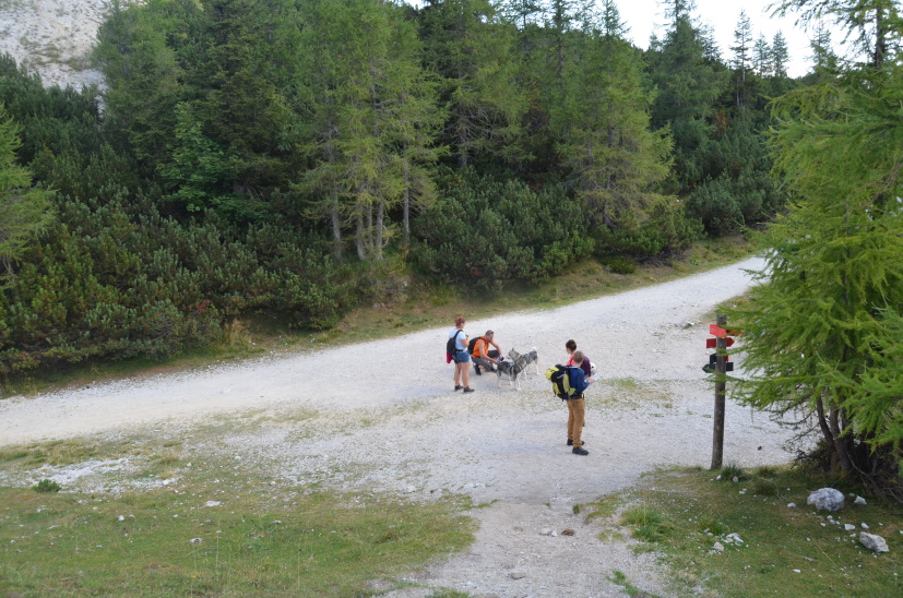 Kousek pod průsmykem je pramen Soči, naše další zastávka. My se k tomu bohužel až dostat nemůžeme. Kousek před pramenem začíná být cesta jen pro dvounožce. Je totiž po skále a musíte se držet ocelového lana. Tak my jsme měli pauzičku s malou paničckou a velcí páničci se vydali kouknout k prameni. A docela koukali, Soča totiž nikde. Řeka vyvěrá ze skály z podzemního jezera. Ale díky letošnímu suchu mohli jít poslední úsek po kamenech, které nejdou jindy vidět.
